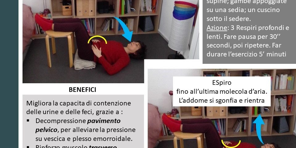 Vi metto a disposizione un esercizio semplice che può aiutarvi (cliccate sulla foto in testa all’articolo). Possibilmente, eseguitelo tutti i giorni per almeno 5’ minuti consecutivi. Una volta al mattino e una volta nel tardo pomeriggio, a stomaco vuoto.